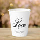 Tazas de papel con la palabra "amor" en tipo cursivo elegante. Perfectas para fiestas de boda, compromisos y aniversarios de boda.