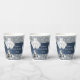 Tazas de papel para fiesta de cumpleaños de mezclilla y diamante con zapatos de tacón alto con purpurina plateada y globos sobre un elegante fondo de mezclilla y diamante. Puedes agregar el texto que desees a estas hermosas tazas de papel de mezclilla y diamante para cualquier ocasión.