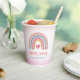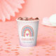 Esta encantadora taza de papel para fiesta de cumpleaños es una elección perfecta para agregar un toque personal a su celebración de cumpleaños. El diseño muestra un arcoíris lindo en tonos encantadores de rosa, azul claro y dorado, lo que agrega un divertido toque boho a la fiesta. La taza está bellamente acentuada con un corazón rosa.