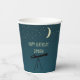 Cree placas de papel personalizadas que sean perfectas para fiestas de cumpleaños y más. Ya sea que estés haciendo un fiesta con estrellas o con temas astronómicos o que simplemente tengas un buen fiesta de madera a la antigua, estas divertidas tazas de papel personalizado son una elección perfecta. Cuentan con un ilustracion de un telescopio con un cielo nocturno de color azul oscuro con estrellas amarillas pálidas y una luna creciente encima. Su mensaje aparece en el centro con letras amarillas pálidas.