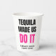 Serve up drinks in style with this customizable “Tequila Made Us Do It” paper cup—perfect for bachelorette parties, girls’ trips, and destination celebrations. Featuring bold, modern typography with a vibrant pop of pink, plus personalized details like the bride’s name, location, and year, this cup adds a fun and cohesive touch to your party setup.