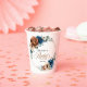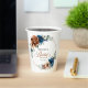 Elegantes tazas de papel para despedida de soltera con tema floral de color azul marino, terracota y naranja terroso que presentan un elegante ramo de rosas de color azul marino, peonías de color terracota y hojas de eucalipto verdes. Por favor, contácteme para cualquier ayuda en personalización o si necesita algún otro producto con este diseño.