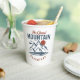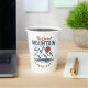 A vintage-style outdoor adventure logo featuring rugged mountains, a red sun, forest silhouettes, and bold typography.