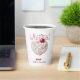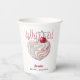 Diviértete y sé coqueta con estos vasos de papel para desayuno nupcial Tiene al novio bajo su zapato. Con tonos rojos intensos y un corazón de crema chantillí y una deliciosa cereza encima, estos vasos crean un ambiente picante y romántico para celebrar a la futura novia. Personaliza los detalles para hacerlo único.