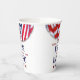 Este diseño presenta un bunting rojo, blanco y azul en la parte superior y estrellas en la parte inferior con el mensaje "Tierra del LIBRE por el VALOR" en ambos lados del asa. Gran accesorio de picnic o fiesta.
