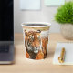 Estas tazas de papel tienen un tigre retratado en ellas.