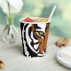 Hermoso arte vector abstracto minimalista de cabeza tigre frente a frente en colores llamativos.