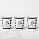 Esta elegante taza de papel de la ducha de la novia cuenta con un sombrero rosa de estilo derby grande con rosas y un lazo/cinta negro sobre un fondo blanco con rayas negras. Personalice según sus necesidades. Puede encontrar más productos coincidentes en mi tienda.