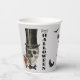 Aquí hay una divertida taza de papel de la fiesta de Halloween que presenta un cráneo gris con corbata de arco y un sombrero de top formal. La imagen aparece dos veces alrededor de la taza, con tu propio mensaje en negro entre ellos. En el otro lado está el texto vertical que dice "Feliz Halloween" en negro. Asegúrese de ver los productos que coinciden en nuestra tienda.