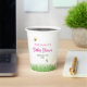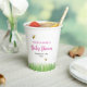 Deliciosamente encantadora taza de papel de personalizable para una ducha de bebé chica con una cigüeña adorable con abejas y mariposa en la pradera. Un suave fondo pastel, y en su centro una cigüeña caprichosa, ilustrada con gracia, lleva un dulce paquete envuelto en un paño suave. Alrededor de la cigüeña, unas cuantas abejas juguetonas con sonrisas amistosas y una mariposa alrededor, le dan un toque animado a la escena. Nubes suaves y onduladas adornan el cielo. Celebre la llegada inminente del recién nacido con esta linda ducha de bebé con temática de cigüeñas. Este ilustracion transmite un sentido de alegría, calidez y expectación festiva del miembro más nuevo de la familia. Personaliza el elemento con tu información.