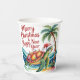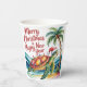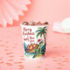 Un caprichoso Navidad recibe una tarjeta con una alegre acuarela de ilustracion de una tortuga marina con un festivo sombrero de Santa Claus y adornada con luces de Navidades relucientes colocadas alrededor de su concha, con un telón de fondo de una palmera que se balancea también iluminada con luces cálidas y un tranquilo océano turquesa. El caparazón de la tortuga está pintado con intrincados patrones de flores tropicales en suaves tonos pastel de coral, lavanda y verde marino, mientras que el océano tiembla con sutiles gradientes de azul y plata, creando una atmósfera tranquila y a la vez festiva. "MERRY CHRISTMAS & HAPPY NEW YEAR" aparece en una letra juguetona con letras a mano en la parte superior de la tarjeta, con el interior ofreciendo un espacio blanco limpio para un mensaje personalizado y un sutil y repetitivo patrón de pequeñas conchas marinas a lo largo del borde inferior para reforzar el tema tropical. El tono general es alegre y alegre, perfecto para enviar cálidos deseos a amigos y familiares durante las vacaciones.