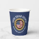 Personalizable 2024 TOTAL SOLAR ECLIPSE USA Cups de papel en AZUL, con TEXTO PERSONALIZABLE, para celebrar el Eclipse Solar Total sobre Estados Unidos Continental, Canadá y México en abril de 2024. El TEXTO del PERSONALIZABLE dice TOTAL DE ECLIPSE SOLAR y Fiesta de observación [NOMBRE DE LA FAMILIA]. Puede utilizar el campo de texto curvo superior para una frase más larga si es necesario (y eliminar el texto curvo inferior). El diseño muestra un eclipse solar con efecto oro 2024 en el medio y la bandera de los Estados Unidos detrás. ¡Compra estas Copas de Papel EEUU para toda la familia o para los invitados fiestas de tu reloj! ¡La totalidad valdrá la pena! Se dispone de suministros de fiesta para EE.UU. coincidentes.