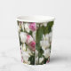 Vasos De Papel Tulipanes blancos y rosados brillantes en un solea