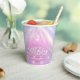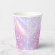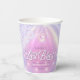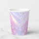 Elegante diseño personalizado de vaso de papel para Despedida de soltera Disco en hermosos colores gradientes desde lavanda hasta periwinkle y rosa con una bola de discoteca funky, fuente retro glamorosa y fondo de luces de discoteca brillantes. Este diseño elegante y sofisticado se adapta fácilmente a cualquier cena especial y/o evento de baile. Busque ID928 para ver otros productos de esta colección de moda.