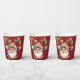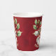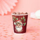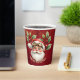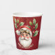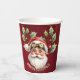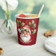Un caprichoso y caprichoso Santa Claus con un fondo rojo profundo adornado con hojas y bayas huecas. Santa lleva un gorra rojo con guarnecido blanco y un par de gafas al estilo del steampunk con acentos dorados. Su barba blanca y sus mejillas rosadas le dan un aspecto alegre. Las palabras "MERRY CHRISTMAS" están escritas en una fuente decorativa en la parte inferior de la imagen.