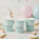 Cuidados tazas de papel de personalizado de primer cumpleaños con el tema "Una gallina de la piel" con un ilustracion adorable.