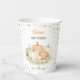 ¡Una calabaza está en camino! Copas de papel de Baby Shower con adorables calabazas punteadas en tonos verde suave, naranja, crema y grisáceo sobre un fondo blanco con un divertido y caprichoso patrón de puntos de polka. Perfecto para un encantador niño con tema de otoño o una ducha de bebé neutra en cuanto a género. Personalizar fácil del texto - Kate Eden Art