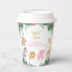 ¡Copas de papel de cumpleaños súper dulces de safari para la celebración de su primer cumpleaños "salvaje"! Un mono lindo, cebra rayada, león saltante, elefante rociado y una jirafa curiosa se unen al fiesta :) Flores de jungla rosa claro y oscuro se emparejan con hojas y helechos tropicales. ¡Perfecto para el primer cumpleaños de la bebé!