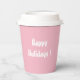 Algunas graciosas tazas de papel rosado de la Festividad con una vaca personalizado envuelta en las luces de sus Navidades . El texto de la parte trasera dice "Felices Fiestas" . Manténgalo tal como está o modifíquelo con el suyo propio . © ArianeC Ilustraciones-Todos los derechos reservados
