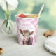 ¡Sirva bebidas de cumpleaños en un estilo adorable con estas tazas de papel de "Holy Cow I'm One"! Con una vaca acuarela en una corona floral, un texto de estilo occidental rosado, y un suave patrón de manto de gingham, son la adición perfecta para una celebración de primer cumpleaños con tema de cowgirl o de granja. ¡Un toque divertido y festivo que gustará a sus huéspedes!
