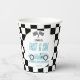 ¡Este es un coche de carreras rápido y de seis carreras azules 6º de cumpleaños, copas de papel!