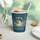 Verde azulado y oro sobre las copas de papel de Baby Shower en la Luna. Personaliza el texto para leer lo que quieras!