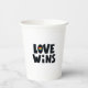 Este diseño presenta la frase "El amor gana" con un corazón de arcoiris colorido.