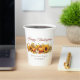 Esta antigua copa de papel de fiesta de vacaciones de esta compañía, de estilo antiguo, presenta un dibujo vintage de calabazas naranjas, hojas caídas y bonitos girasoles otoñales. Nostalgic Happy Thanksending decoración con escritura marrón de tu nombre de negocio y mensaje profesional personalizado en la espalda para clientes y amigos.