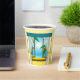 Bonitas vistas a la playa de verano por una ventana. Este diseño parece realmente efectivo en estas tazas de papel