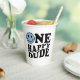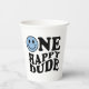 Sonrisa preppy azul ondulante un feliz tipo primera copa de papel de cumpleaños.