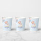 Lindo diseño de vaso de papel para fiesta de Baby Shower con Tematica de Oso "We can Bearly Wait baby" es un diseño lindo con tonos azules y la ilustracion de un oso con globos azules . En el diseño puedes añadir nombre y fecha de tu fiesta. No Lo Pienses y adquiere este lindo diseño ahora.