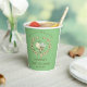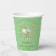 Las exquisitas tazas de papel con temática de ducha para bebés presentan una hermosa corona de abejas y flores con texto de personalizable sobre fondo verde.
