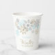 tazas de papel de copo de nieve azul para el primer cumpleaños en invierno.