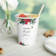 Winter Poinsettia Bridal Shower Paper Cups es creado por szdesign. Cubos de papel clásicos de ducha de novia enmarcados por dos lados por la acuarela hermosa Poinsettia . Personalizar las tazas seleccionadas con tus detalles para el día de la ducha. Es sencillo y el resultado es visible inmediatamente en la pantalla. Esta plantilla de tazas de papel de ducha de novia combina dos tipos de letra diferentes para obtener un aspecto más dinámico.