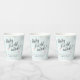Cupas de papel de ducha para bebés de invierno con "Baby it's frie out" escrito en escritura caligráfica moderna. Los bordes son ramas dibujadas a mano con bayas rojas y nubes de algodón hinchadas. El fondo es un azul helado de menta. Se puede personalizar la sencilla redacción de las tazas de fiesta de la ducha de bebé debajo.
