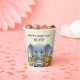 These sweet woodland animals birthday paper cups feature a charming storybook illustration of an elephant, deer, and lion, creating a warm and playful forest party look. The soft colors and friendly characters are perfect for toddler and kids birthday celebrations.