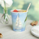 Playa tropical. Yate en el mar Palma en un día soleado. Acuarela. El ilustracion acuarela fue dibujado y escaneado. La imagen será a la vez un buen regalo y una magnífica decoración interior.
