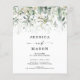 Este elegante diseño presenta una suave cortina de agua de eucalipto, vegetación y adornos dorados. Haga clic en el botón Personalizar y "Haga clic para más personalizares" para editar el color de la redacción del guión. Vea toda la colección para ver más elementos coincidentes.