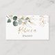 Elegante tarjeta de plaza plana con un ilustracion de eucalipto y hojas de oro en acuarela. Debido a este tipo de tarjeta no es posible hacer nombres individuales. En este diseño puede eliminar el nombre del ejemplo (tarjeta en blanco). Entonces tendrías que escribir los nombres individuales a mano.