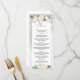 La carta es bohemia y moderna de boda con vegetación y eucalipto y rosas blancas acentuadas con chispas doradas en el fondo de las acuarelas