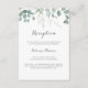Esta minimalista tarjeta de recepción de bodas con eucalipto es perfecta para un boda rústico. El diseño presenta unas elegantes hojas de eucalipto verde acuarela.