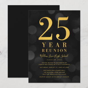 Tarjeta De Confirmación De Asistencia 25 cumpleaños o aniversario regal oro y negro