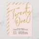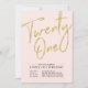 Celebra tu día especial con esta sencilla y elegante invitación a la fiesta de cumpleaños 21. Este diseño presenta un guión de pincel de oro de moda con un diseño limpio en combinación de color rosa y dorado. Más diseños disponibles en mi tienda BaraBomDesign.