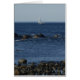 Este es el Océano Atlántico frente a la costa de Ogunquit, Maine. El barco de vela se encuentra cerca de la rocosa costa.