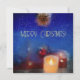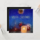 Para Navidad, una vela con iluminaciones y piña que se desvanece en la noche nevada.