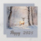 Esta tarjeta cuadrada plana capta la tranquilidad de la belleza del invierno con un ciervo acuarela rodeado de árboles desnudos, en tonos suaves y tranquilizantes. Con "Feliz 2025" escrito en toda la escena, es un recuerdo perfecto para celebrar el nuevo año. Ideal para los amantes de la naturaleza.