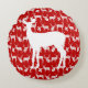 ¡Esta almohada redonda de diseño de ciervos es perfecta para todo aquel que ame ciervos, animales, vida salvaje y diseños divertidos! Varias pequeñas siluetas rústicas de ciervos blancos sobre un fondo de rojo con una gran silueta blanca delante, detrás. Esta almohada de ciervo es perfecta para el salón, el jardín, la habitación familiar, la cabaña familiar en el lago, y por supuesto es un gran regalo.