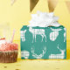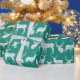 Siluetas blancas rústicas de ciervo y cabeza de ciervo sobre papel verde azulado de envoltura.