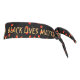 Personalice o quite fácilmente el texto en esta humedad-wicking, venda atlética del lazo-detrás inspirada por los tiroteos trágicos de la gente joven negra por la policía. Ofrece un modelo abstracto del oro, rojo y negro con el texto: Materia negra de las vidas. Todos pacífico trabajemos para la justicia en nuestras comunidades.