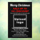 ¡Feliz Navidad! Una de las fiestas más celebradas del año. También es una de las mejores temporadas para publicitar su negocio o promocionar su nombre de marca a clientes. Vinilo personalizable para ventanas con Venta de Navidad, el nombre de su negocio y otra información. Vinilo para ventanas que puede utilizar como material de marketing para atraer a más clientes. Personalícelo y muéstrelo para convencer a más clientes de que compren sus productos o a que les gusten sus servicios. Vinilo para ventanas para diciembre o Navidad en julio. Los colores del diseño son textos rojos y blancos sobre fondo negro. Los contenidos son saludo de Feliz Navidad, textos de venta con porcentaje de descuento que ofrecerá, fechas de venta, nombre del negocio, logotipo, dirección, número de teléfono, correo electrónico y sitio web o página de redes sociales de su negocio. Por favor, compruebe la apariencia después de subir el logotipo y escribir los textos. Si la apariencia es de su agrado, puede realizar su pedido ahora. Si necesita cambiar el tamaño y mover el logotipo y los textos para que se ajusten a este vinilo para ventanas o al tamaño y forma que elija, por favor, cambie en la herramienta de diseño. También puede cambiar el color de fondo, el color de la fuente y el estilo de la fuente en la herramienta de diseño. ¡Feliz Navidad! Le